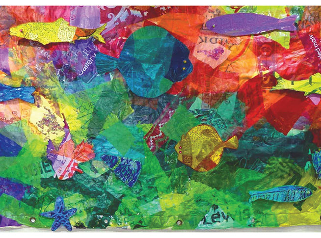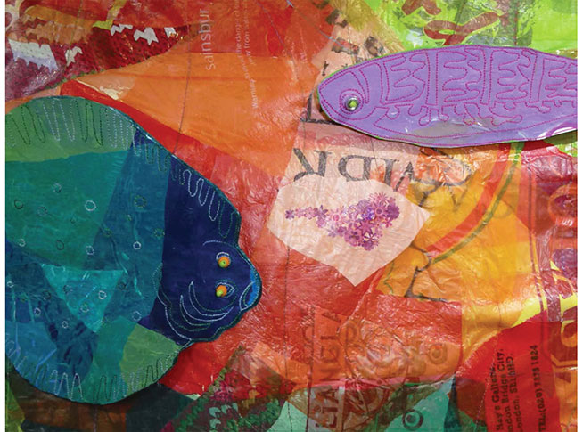 The ‘seabed’ base was made by laminating a variety of plastic bags onto an old, discarded canvas dodger.